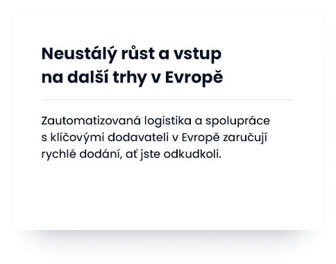 Díky našim automatizovaným logistickým procesům jsme schopni zaručit rychlé a spolehlivé dodání výrobků našim zákazníkům. Dbáme na to, aby každý krok procesu vyřízení objednávky proběhl hladce a splňoval nejvyšší standardy.